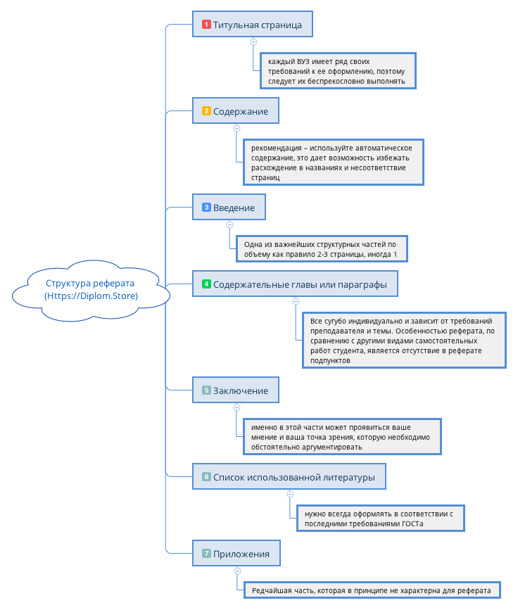 Каждая научная работа имеет свою устоявшуюся структуру, не исключением является и реферат. В классическом исполнении реферат имеет следующую структуру: